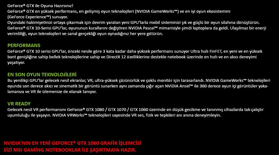 - Ekran Kartı: GeForce® GTX 1060 6GB GDDR5