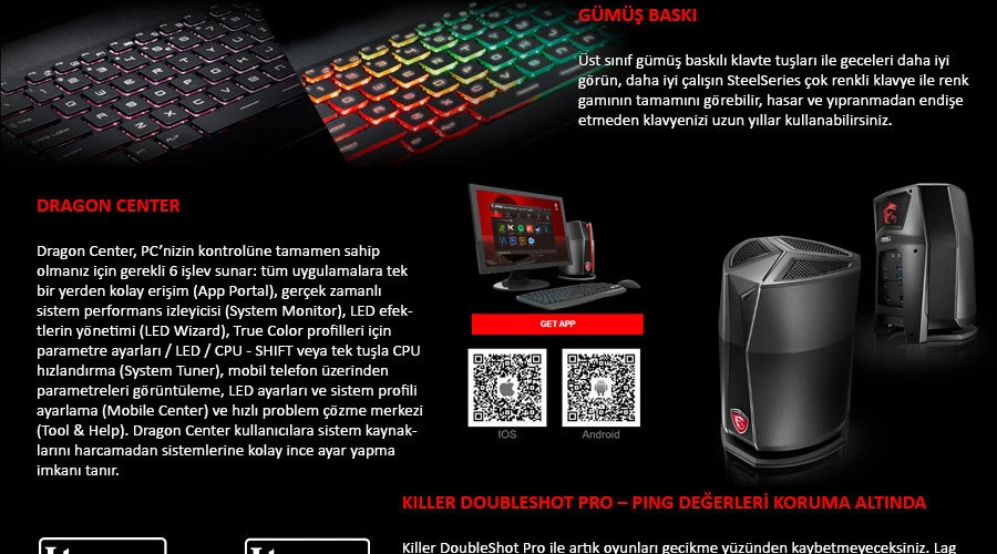 - Kablosuz Bağlantı: Killer ac Wi-Fi +