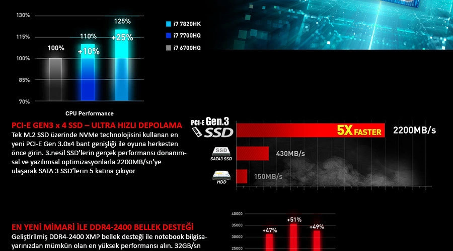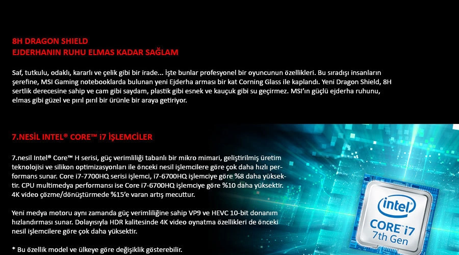 - İşlemci: Intel Core İ7 - 7700HQ (6MB Cache Turbo Boost 3.8 Ghz)