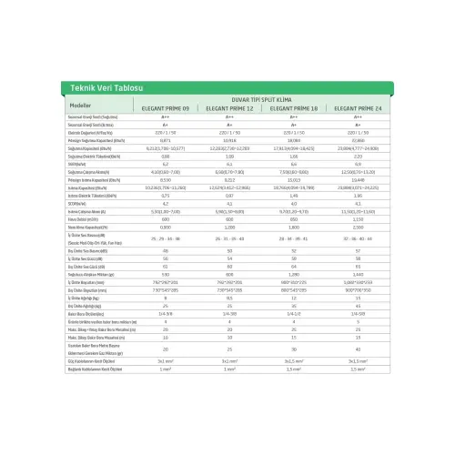 Baymak Elegant Prime 12 A++ 12000 BTU Inverter Duvar Tipi Klima Özellikleri