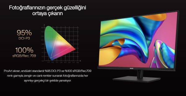 Diğer monitör modeli olan ProArt Display PA328CGV baktığımızda diğer modelden farklı olarak. Bu monitör bünyesinde 165 Hz ekran yenileme hızı (VRR) ve AMD FreeSync™ Premium Pro teknolojileriyle son derece akıcı ve yüksek kaliteli görüntüler sunan bir WQHD (2560 x 1440) HDR ekran barındırığını görüyoruz. Bu ekran özellikleri sayesinde profesyonel kullanıcılar, tek bir ekranda aynı anda birden fazla iş yapabilir ve yüksek hızda görüntü işleyen işlevleri halledebilir. Bu monitör ayrıca VESA Display HDR 600 sertifikalı PA328CGV maksimum 600 nit parlaklığa ulaşıyor ve bu sayede kullanıcılar daha canlı ve pürüzsüz görüntülere ulaşabiliyor. Geri kalan (Renk doğruluğu, USB-C girişi vb.) özelliklerin diğer modelle benzer olduğu söyleyelim.