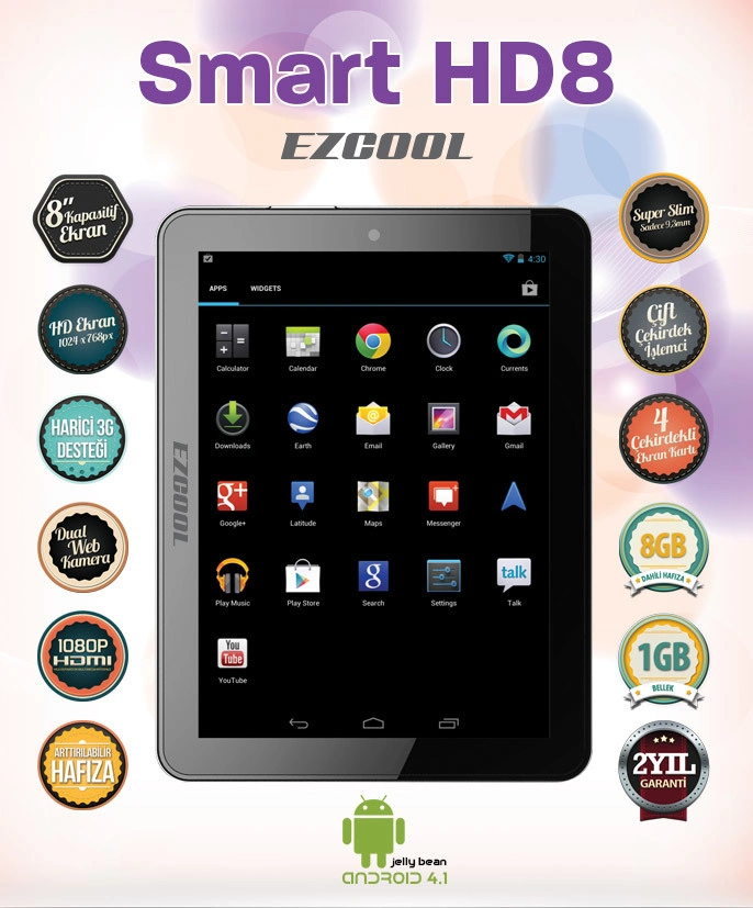 Ezcool Smart HD8 8GB DualCore 8″ HD Tablet+4Hediye