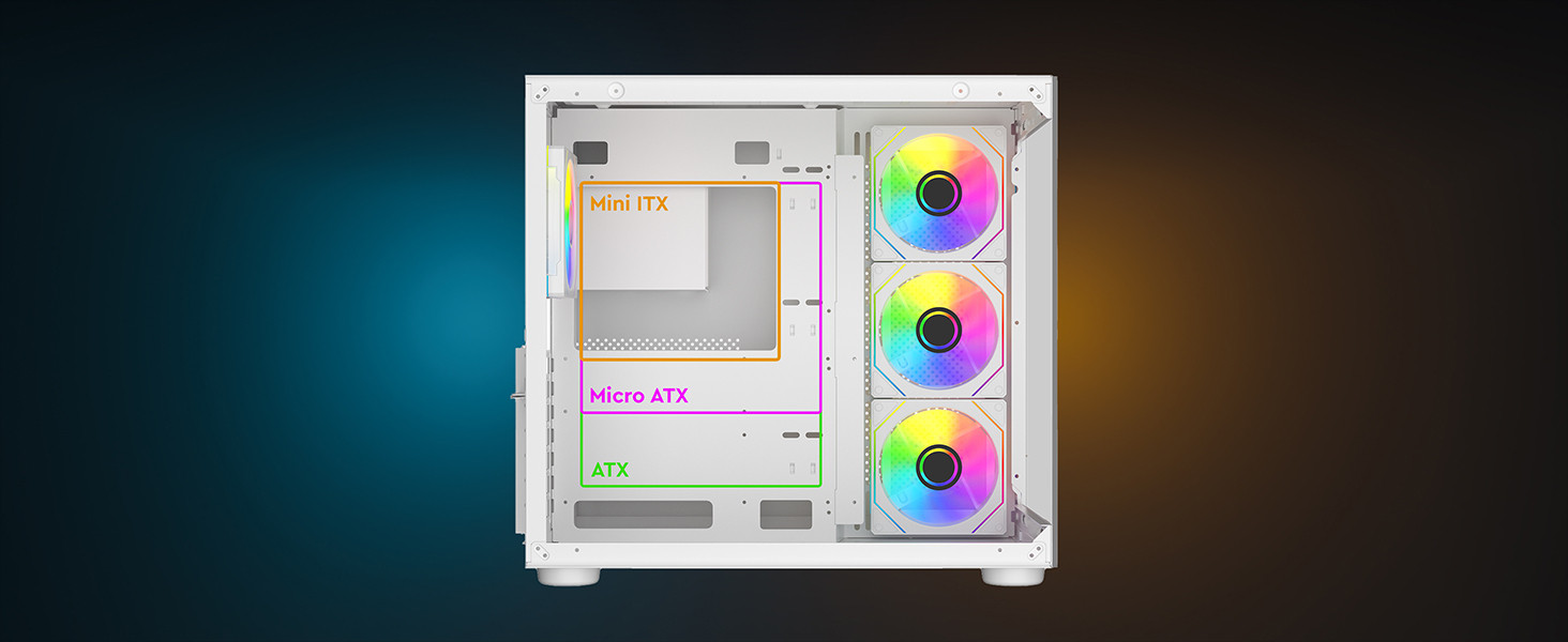 Bu model, maksimum 10 adet 120mm fan desteği ile üstün hava akışı sunar. Kasa, 4 adet önceden takılı ARGB fan ile birlikte gelir ve ek fan yuvaları sayesinde gelişmiş soğutma çözümleri sunar. Bu sayede sistem bileşenleri daima ideal sıcaklıkta çalışır.