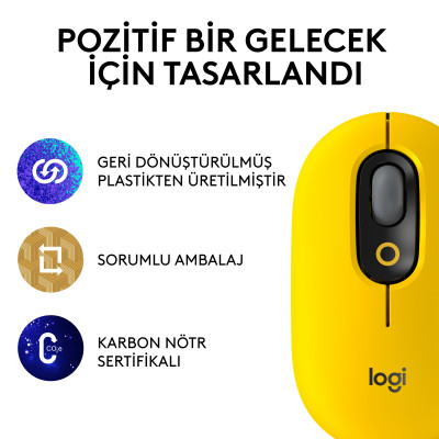 Logitech POP Mouse Blast Emoji Tuşlu Sessiz Kablosuz Mouse - Sarı&Siyah Genel Özellikler