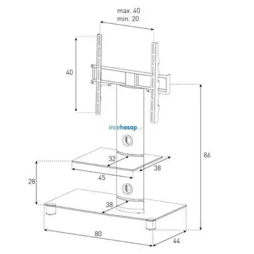 32 inç e kadar, 30 kg taşıma kapasiteli Plazma TV Sehpası