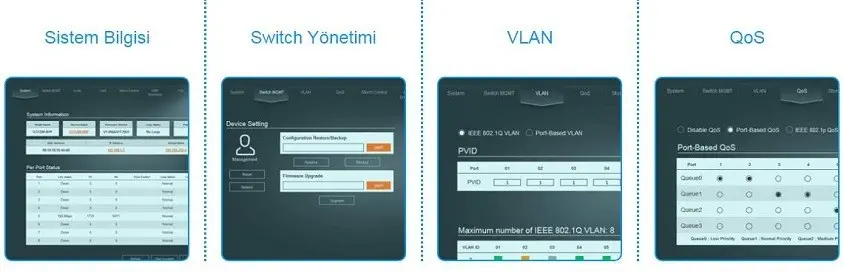 - QoS (Quality of Service) ve IGMP desteğiyle ağ trafiğini verimli yönetir.